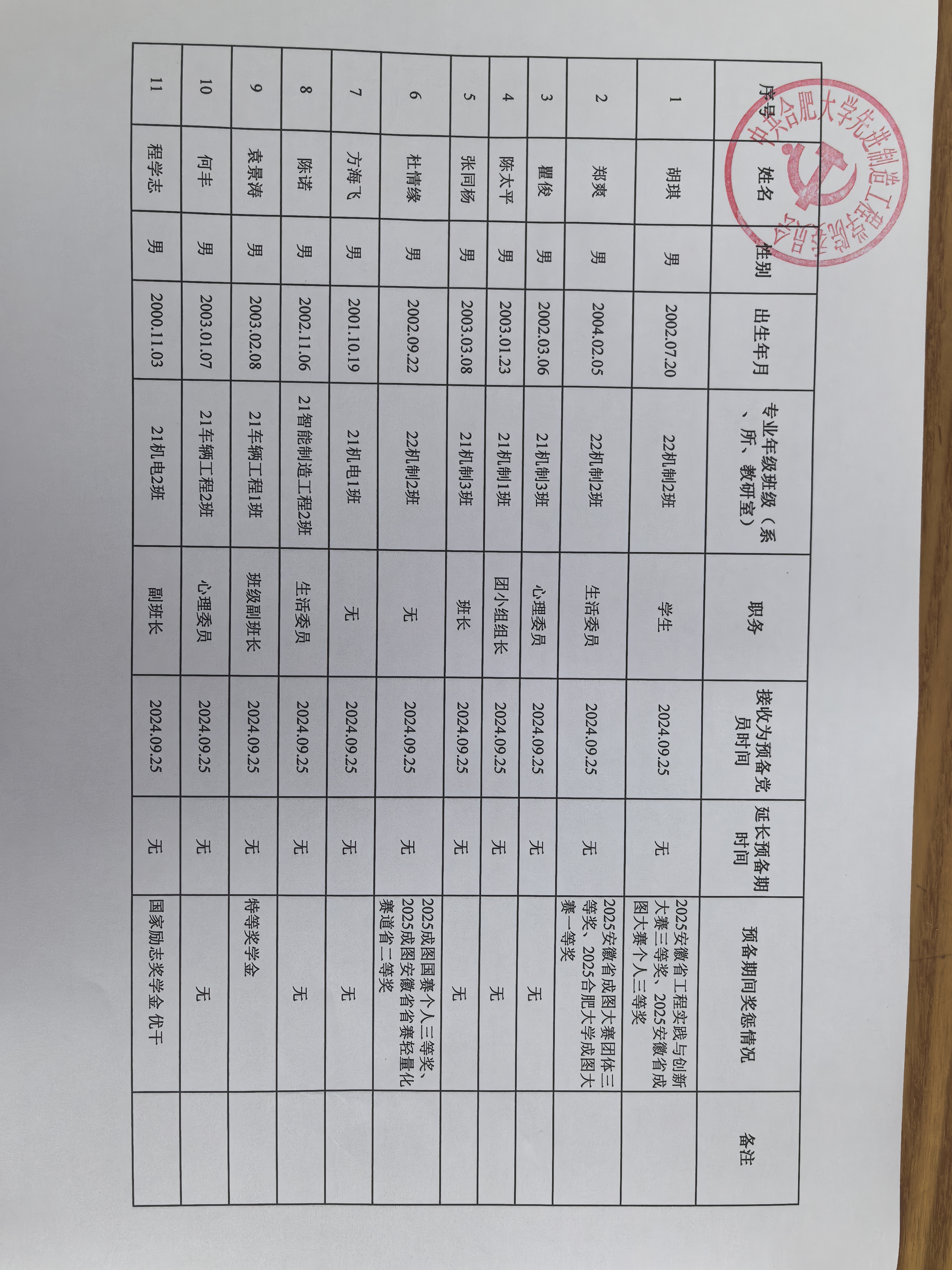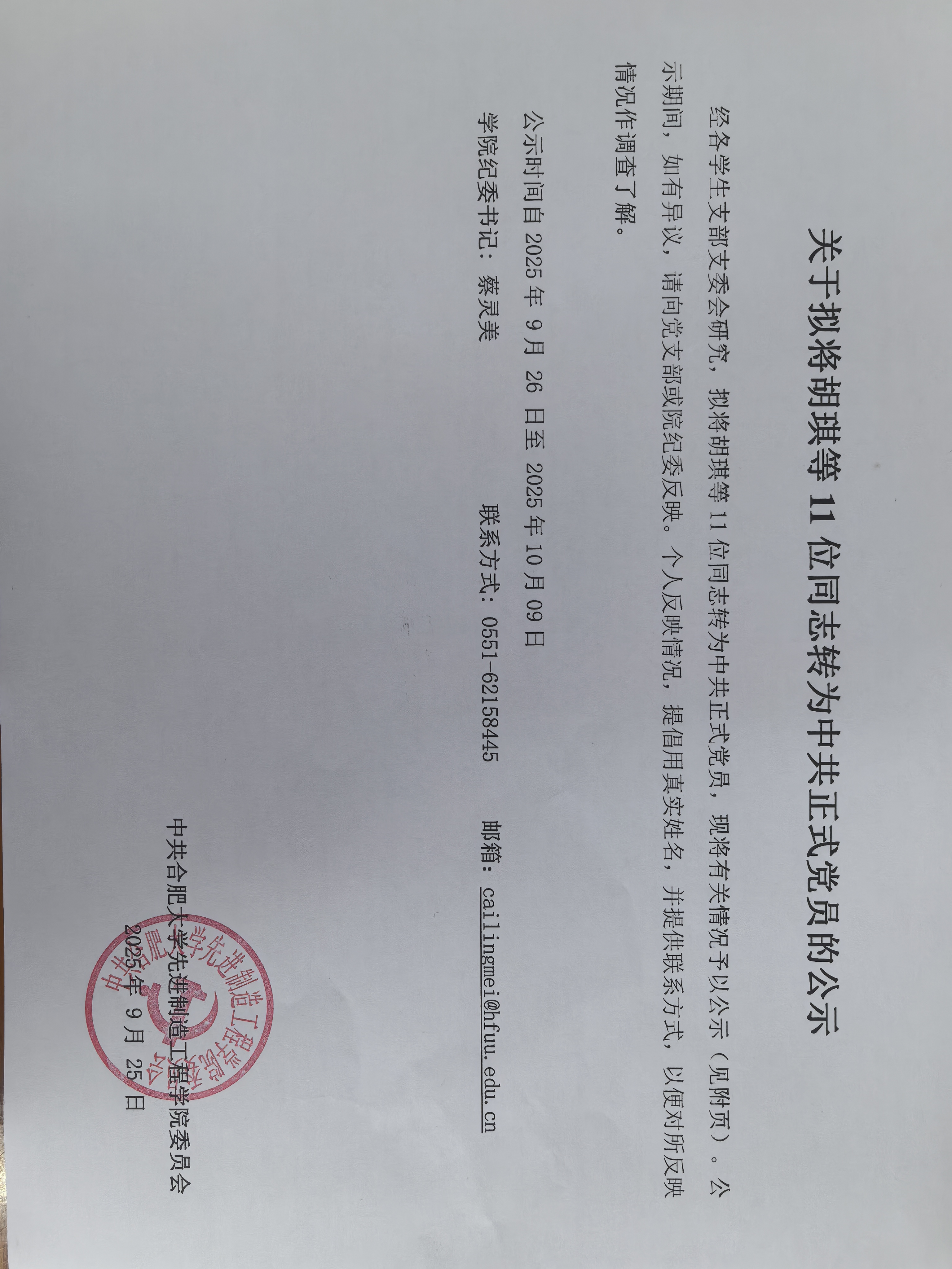 关于拟将胡琪等11位同志转为中共正式党员的公示