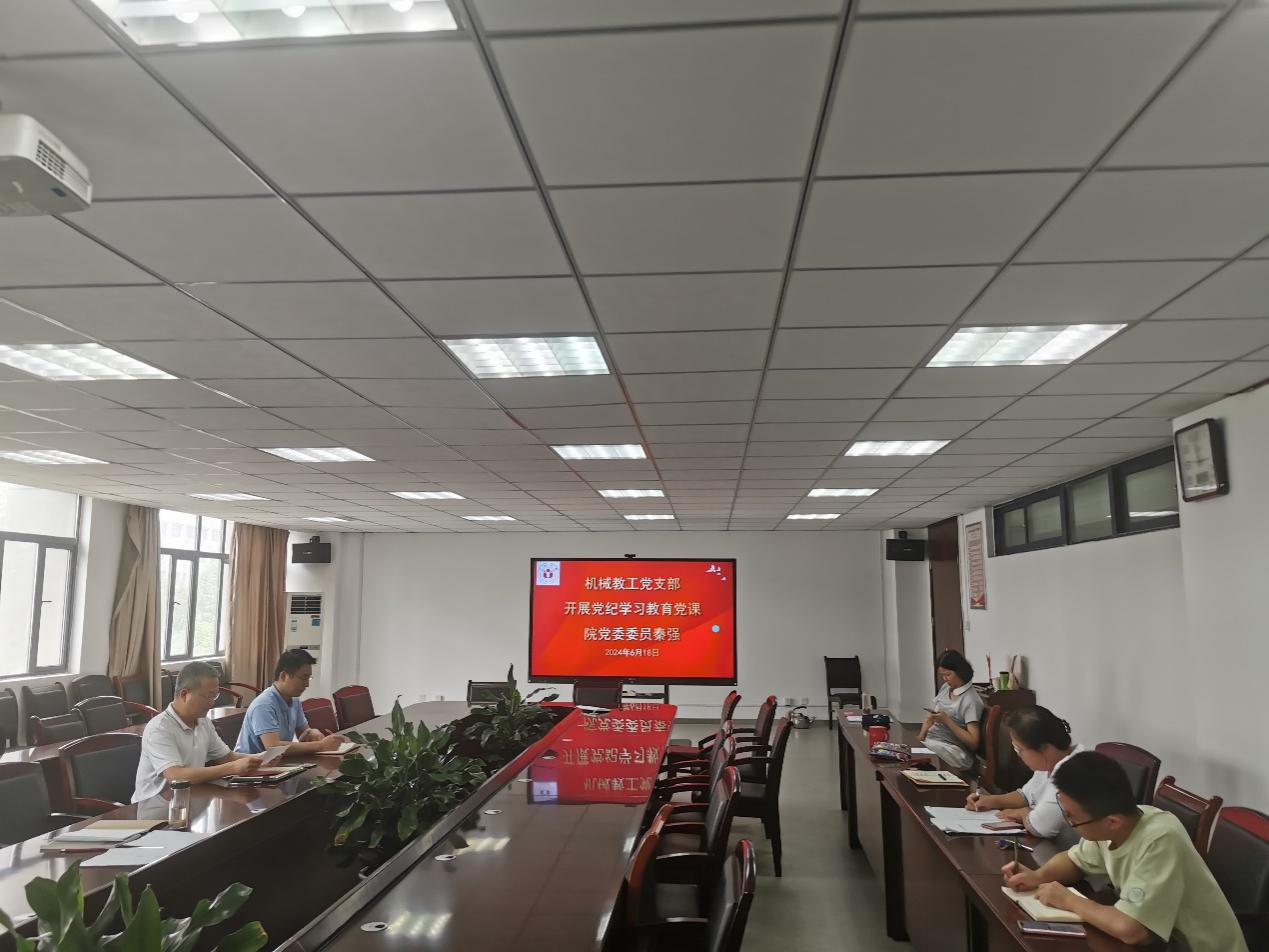 6月18日下午,先进制造工程学院党委委员、副院长秦强在40-305会议室为机械工程系教工党支部全体党员和教师讲授党纪学习教育专题党课。 会上,秦强传达了学校学院关于《中国共产党纪律处分条例》学习的相关要求和会议精神,带领全体党员教师对违纪与纪律处分相关条款进行逐字逐句认真仔细学习。在交流环节,部分党员结合自己的感受认识进行了交流,大家纷纷表示通过此次党课学习对党纪有关内容有了更深的认识和理解。 开展党纪学习教育是当前一项重大政治任务。作为党员要严于律己,以强烈的政治责任感和历史使命感履行职责,切实把《中国共产党纪律处分条例》的内容学习到位,并结合具体工作落到实处。