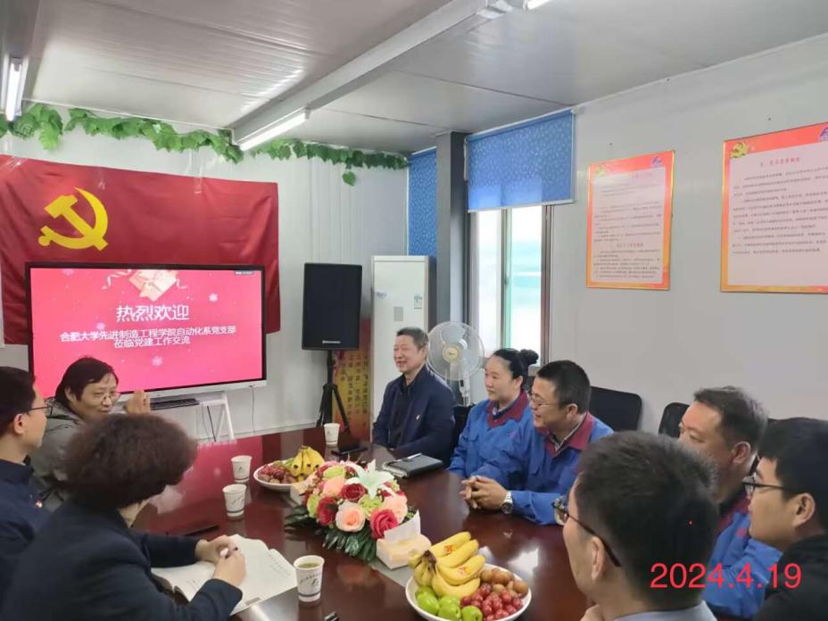 随后,一行人在公司会议室与公司党支部进行了深入交流。孙强同志向公司介绍了合肥大学和自动化专业近几年的发展情况,以及支部开展党建工作的方法和思路,分享了工作成效。
