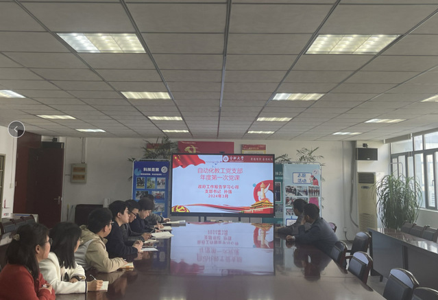 4月9日下午,自动化系教工党支部在38-205会议室开展党课学习。党支部书记孙强教授为支部党员围绕《政府工作报告》学习讲授党课。 支部书记孙强首先向大家介绍了2024年3月5日举行的十四届全国人大二次会议上国务院总理李强所作政府工作报告主要内容。报告对2023年度政府工作情况进行全面回顾和总结,肯定了我国在过去一年在经济、社会、民生等方面的突破与成绩,以及将面临的困难与挑战,同时规划了2024年经济社会发展总体要求和具体指标。