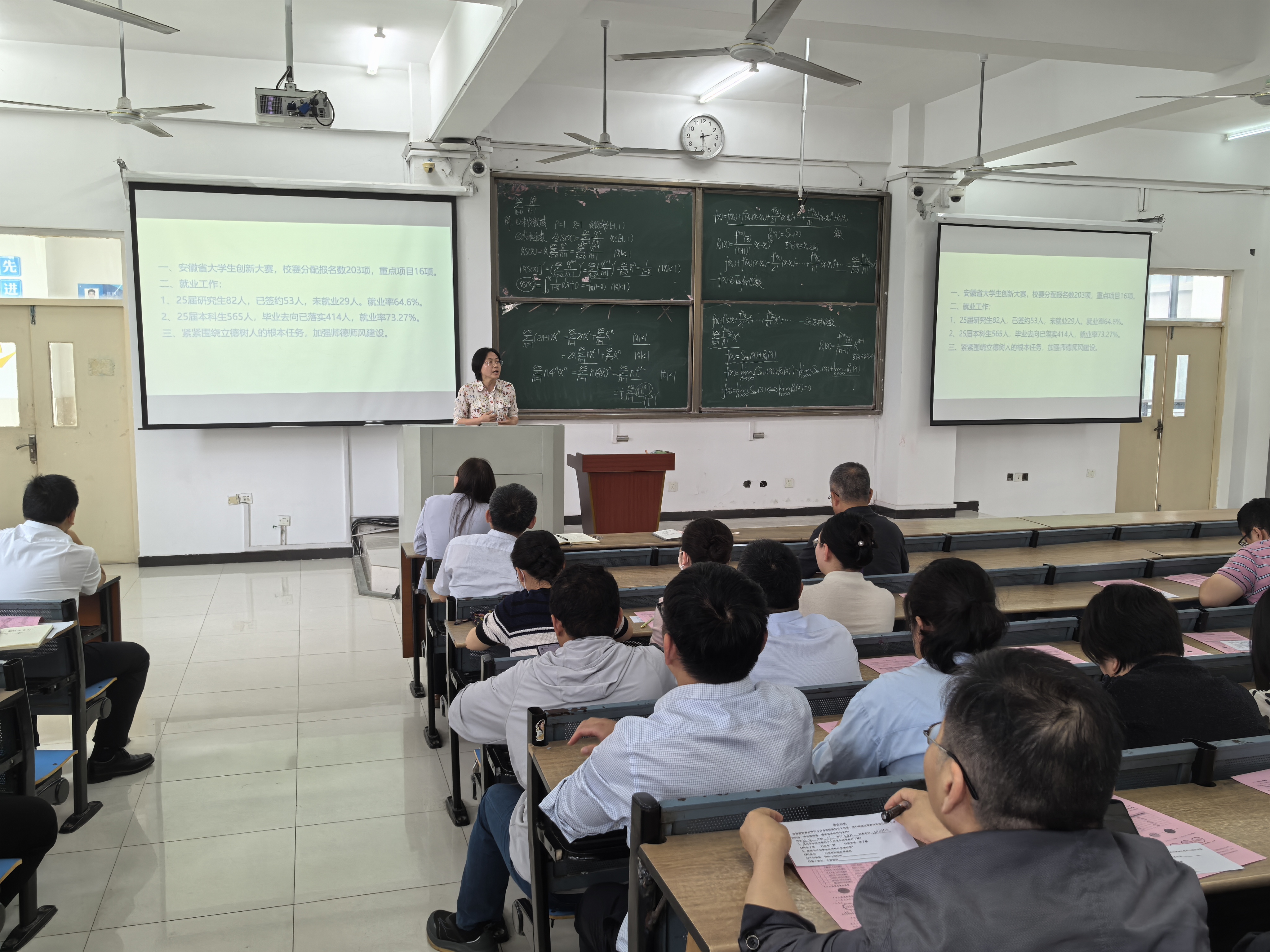 会议还对学院深入开展“高水平应用型大学建设”调查研究进行动员部署,并就近期规范期末教学秩序、严格教学管理、加强学生管理、学院安全工作、推进学生就业、安徽省大学生创新大赛等工作进行安排部署。