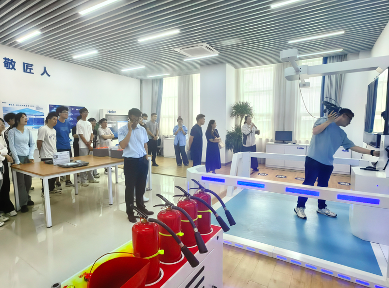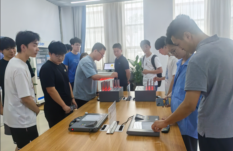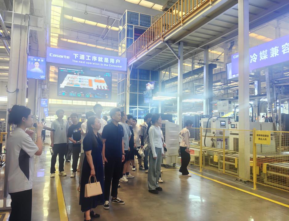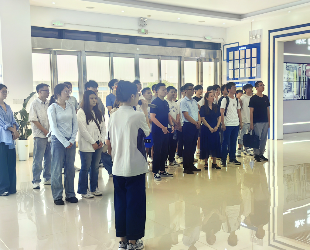 我院师生一行首先参观了海尔空调展厅,深入了解空调技术发展历程及智能制造应用场景;随后实地走访生产基地,自动化、智能化的生产线,让学生们直观感受到数字化生产线的高效运作,对制造业的转型升级有了全新认识。参观同学表示:“这种沉浸式的产业体验打破了课堂与企业的界限,让我们对生产的认知不再停留在课本上。”