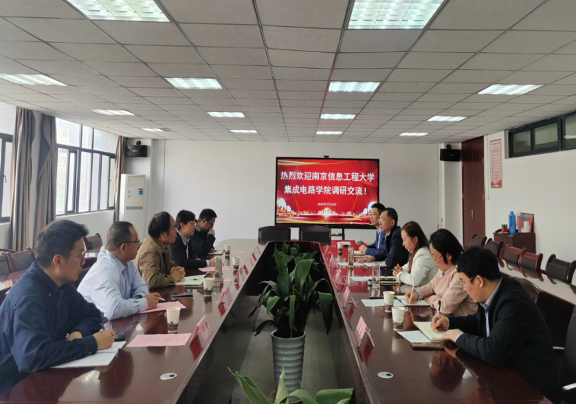 2025年3月26日,南京信息工程大学集成电路学院党委书记唐敏、院长程知群等领导一行来我院调研交流,交流座谈会在40栋305会议室召开,学院党委书记杜娟、院长胡学友、党委副书记蔡灵美、电子信息系主任张胜、教学办主任石朝毅参加会议。