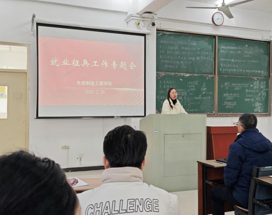 为促进我院毕业生充分高质量就业,部署下一阶段就业和征兵工作,2025年2月25日下午,先进制造工程学院在38栋3阶梯教室召开全院教师就业征兵工作专题会,由学院党委书记杜娟主持,学院全体教师参会。 首先,院党委副书记蔡灵美通报了2025届毕业生目前的就业情况和征兵工作情况。她强调对就业和征兵工作一要思想高度重视,全员参与,系部领导要亲自抓、负总责,形成齐抓共管的工作格局。教师要在毕业设计指导过程中帮助毕业生树立正确的就业观念,提升求职技能,确保学生充分高质量就业。二要认清形势,拓宽就业渠道。积极开拓就业市场,在开展科研工作中加强与用人单位的联系,加强与校友的联系,为毕业生提供更多优质就业岗位。三要摸清底数,建立台账。关注毕业生的学业情况、就业情况、心理状态等,确保毕业生的安全稳定。同时,积极开展征兵宣传工作,鼓励毕业生积极投身军营。