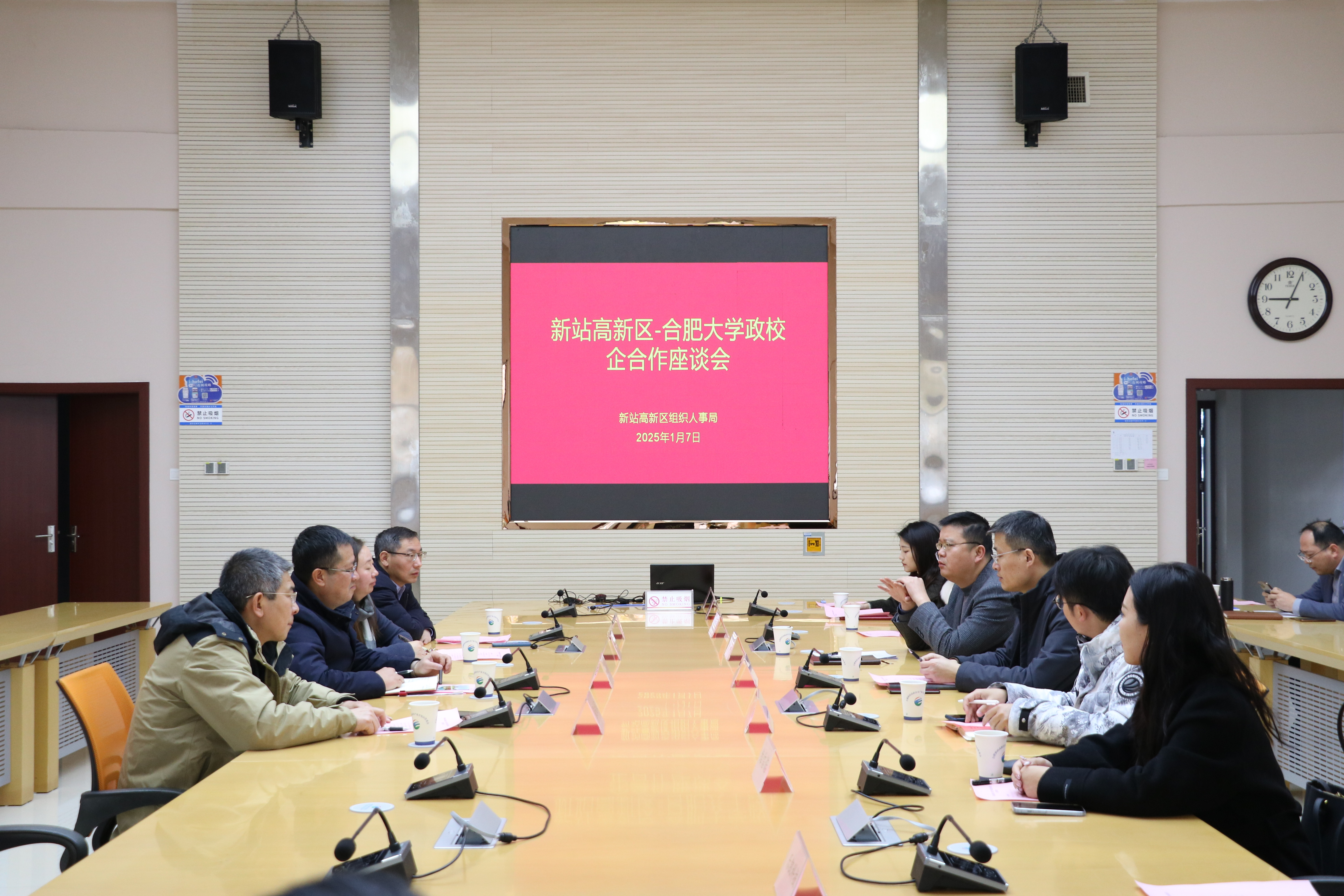 2025年1月7日上午,我校赴合肥新站高新区开展政校企洽谈交流会,合肥新站高新区党建工作部负责人姚文斌、人力资源服务中心负责人彭俊,合肥大学学工部部长、学生处处长丁增云、先进制造工程学院党委书记杜娟、城市建设与交通学院党委书记张永军、语言文化与传媒学院党委书记储昭辉及合肥新站高新区部分企业人事部门负责人等参会交流。