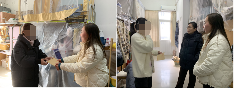 在2025年新春佳节即将到来之际,为加强党内关怀、传递组织温暖,增强党员的荣誉感和归属感,先进制造工程学院党委书记杜娟、党委副书记蔡灵美、学生党支部书记朱江老师一起走访慰问了在校生活困难党员,为困难党员送去关怀和温暖,并向她们致以节日的诚挚问候。