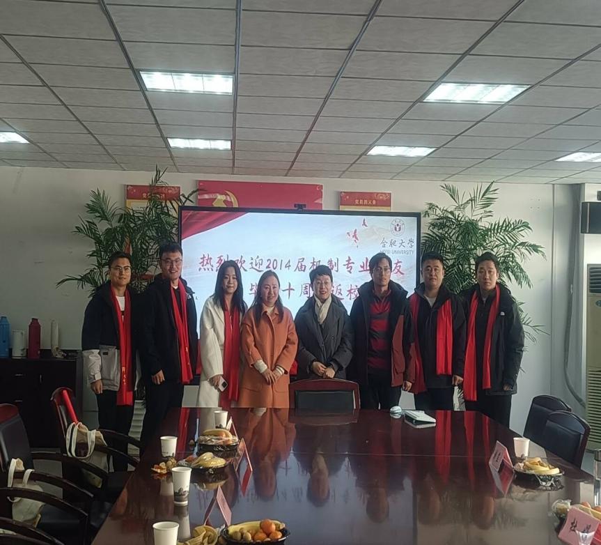 2024年12月28日上午,合肥大学先进制造工程学院在学院会议室举行2014届机械设计制造及其自动化专业毕业10周年校友座谈会。先进制造工程学院党委书记杜娟、学工办主任刘罡、经济与管理学院教授吴晓红及返校校友欢聚一堂,追忆葱葱岁月。
