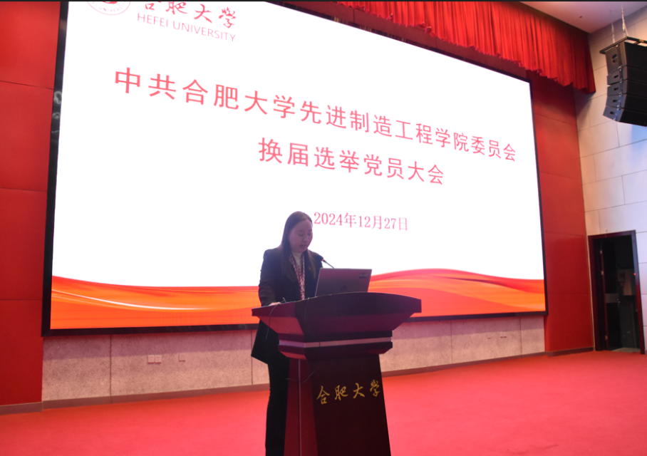 为进一步加强党的基层组织建设,提升党建工作质量,经学校党委批准,2024年12月27日,中共合肥大学先进制造工程学院委员会换届选举党员大会在学术报告厅A厅隆重召开,大会选举新一届党委委员和纪委委员。先进制造工程学院全体师生党员参加会议。 大会在庄严的国歌声中拉开序幕,先进制造工程学院党委书记杜娟代表上一届党委作《党建领航促发展 凝心聚力创标杆 以高质量党建引领高质量发展》的工作报告。回顾了在校党委领导下,学院党委全面贯彻党的教育方针,党建引领学院发展,围绕立德树人根本任务,团结带领全院师生凝心聚力、踔厉奋发,创建全国党建工作标杆院系、全国党建工作样板支部、全国高校“双带头人”教师党支部书记工作室等基层党组织的建设成效,以党建引领学院事业高质量发展。 全体与会党员认真听取并审议了学院党委工作报告,审查党费收缴、使用和管理情况报告,酝酿并表决通过了大会选举办法及监票人名单。以无记名投票、实行差额选举方式进行,选举产生了学院新一届党委委员和纪委委员。大会圆满完成各项议程后,在激昂的《国际歌》中胜利闭幕。 大会结束后,召开了新一届党委委员会第一次会议和纪委委员会第一次会议,采取等额方式选举了书记、副书记,对委员进行了分工,并对新当选的委员提出工作要求。 先进制造工程学院党委将以此次换届选举为新起点,在校党委的正确领导下,继续不断推进党建与业务深度融合,以党建引领学院事业高质量发展,为学校建设成为高水平应用型大学贡献力量。