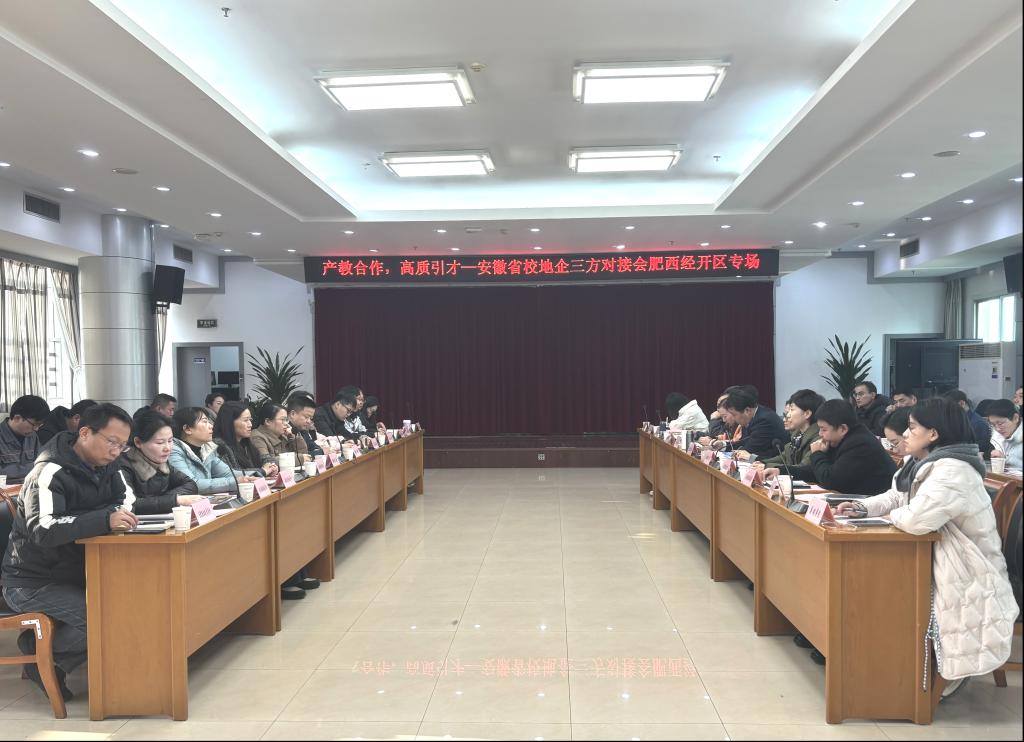 12月12日下午,由安徽省大中专毕业生就业指导中心主办的安徽省校地企人才供需对接会肥西经开区专场活动在肥西经开区管委会举行,我校受邀参会,先进制造工程学院党委书记杜娟、校就业办副科长沈杨参加对接会。