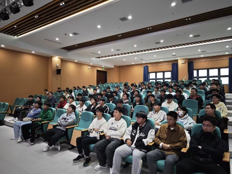 赵富明先生拥有十多年整车研发、投产、制造、零部件及售后质量工作的丰富经验。在讲座中,他以生动幽默的语言和丰富的案例,围绕“如何利用大学四年时间,为未来四十年的人生打下基础”展开讨论, 赵先生结合自己的职业经历,从行业视角剖析了新技术背景下的机遇与挑战,为学生们展示了学术与实践结合的重要性。他特别强调,大学四年是人生规划的关键时期,呼吁学生珍惜时间,明确目标,通过系统的学习与实践为未来奠定坚实基础。