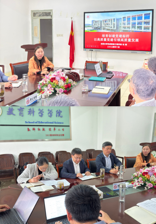 为加强学院党建工作,11月4日下午,合肥大学先进制造工程学院党委与安徽师范大学教育科学学院党委在安徽师范大学教育科学学院开展党建工作交流。先进制造工程学院党委书记杜娟参与交流,交流会由安徽师范大学教育科学学院党委书记许国飞主持,学院党委委员、各党支部委员参加会议。 交流会上,杜娟作题为《培育创建党建标杆 以高质量党建促进高质量发展》的工作报告,介绍了学院党建工作特色、品牌建设和个人思考,从全国党建工作标杆院系创建角度谈了党建双创工作的思考,重点介绍了学院高质量党建引领高质量发展的工作思路和“一融双高”建设成效。 会上,与会人员就如何进一步推动学院党建工作进行深入讨论,学院党委书记许国飞、院长李宜江对如何加强党建与业务的双融双促谈了自己的思路。希望通过高校间党建工作交流,全面落实新时代党的建设总要求和新时代党的组织路线,充分发挥支部战斗堡垒作用和党员先锋模范带头作用,落实立德树人根本任务,把党的领导落实到办学治院全过程,深化基层党组织党建工作,为学院的高质量发展和高水平安全提供坚强保证。