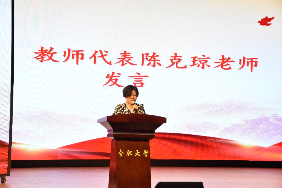 随后,新生代表张笑、高年级学生代表褚鹏俊飞以及教师代表陈克琼先后上台发言。他们分别从不同角度表达了自己的感受,分享了学习经验、成长心得和对未来的展望,为新生们接下来四年的学习成长规划提出了宝贵的建议和指导。