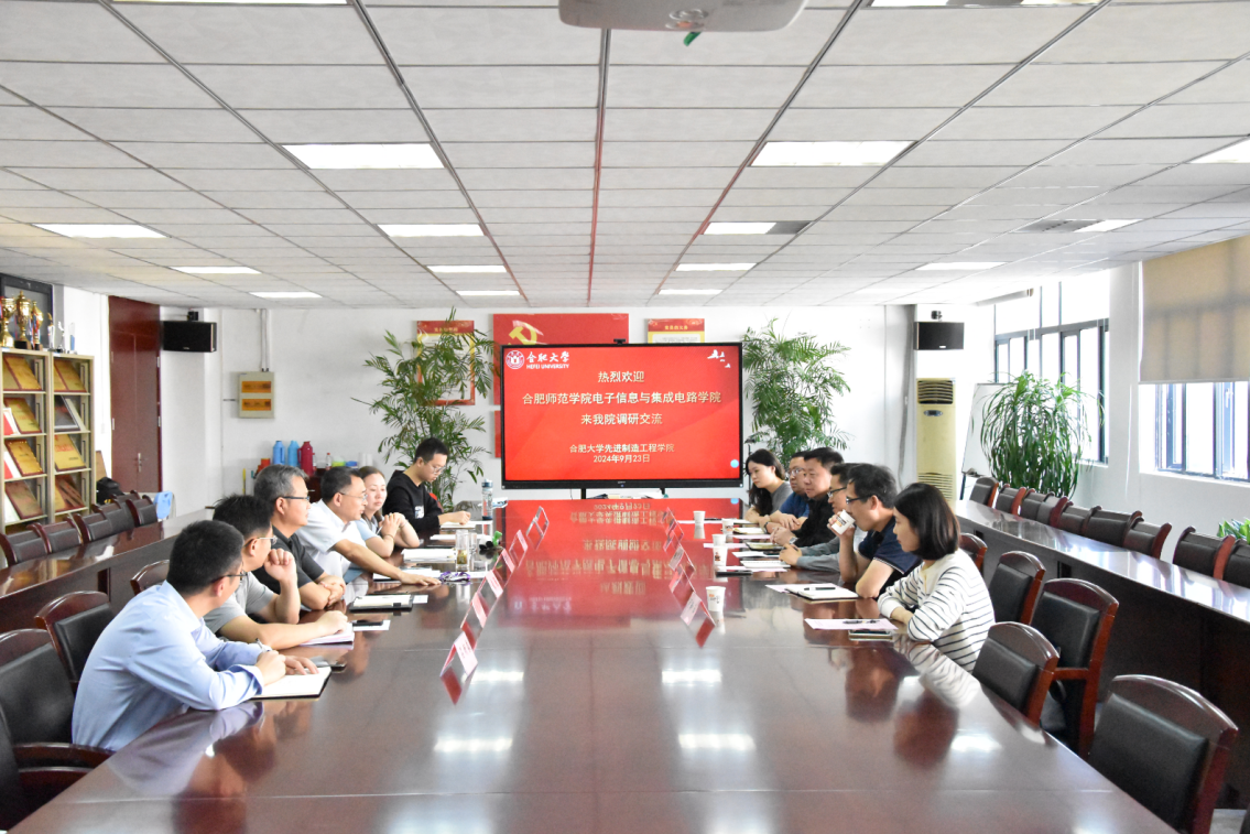 2024年9月23日上午,合肥师范学院电子信息与集成电路学院王东明书记和张忠祥院长一行到我院就学院高质量发展主题进行考察交流。我院党委书记杜娟、院长胡学友、副院长秦强、胡国华、教学办主任石朝毅、辅导员威力旺出席会议,会议由胡学友院长主持。