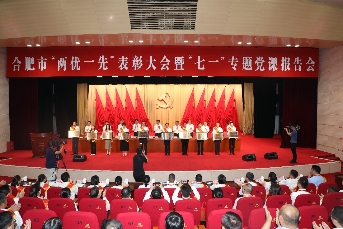 2024年6月27日上午,在庆祝建党103周年之际,合肥市召开“两优一先”表彰大会暨“七一”专题党课报告会,表彰全市优秀共产党员、优秀党务工作者和先进基层党组织。合肥大学先进制造工程学院党委荣获合肥市先进党组织荣誉称号。 会议宣读了合肥市委表彰决定,现场为全市“两优一先”表彰对象代表颁奖,先进制造工程学院党委书记杜娟作为合肥市先进党组织代表上台领奖。
