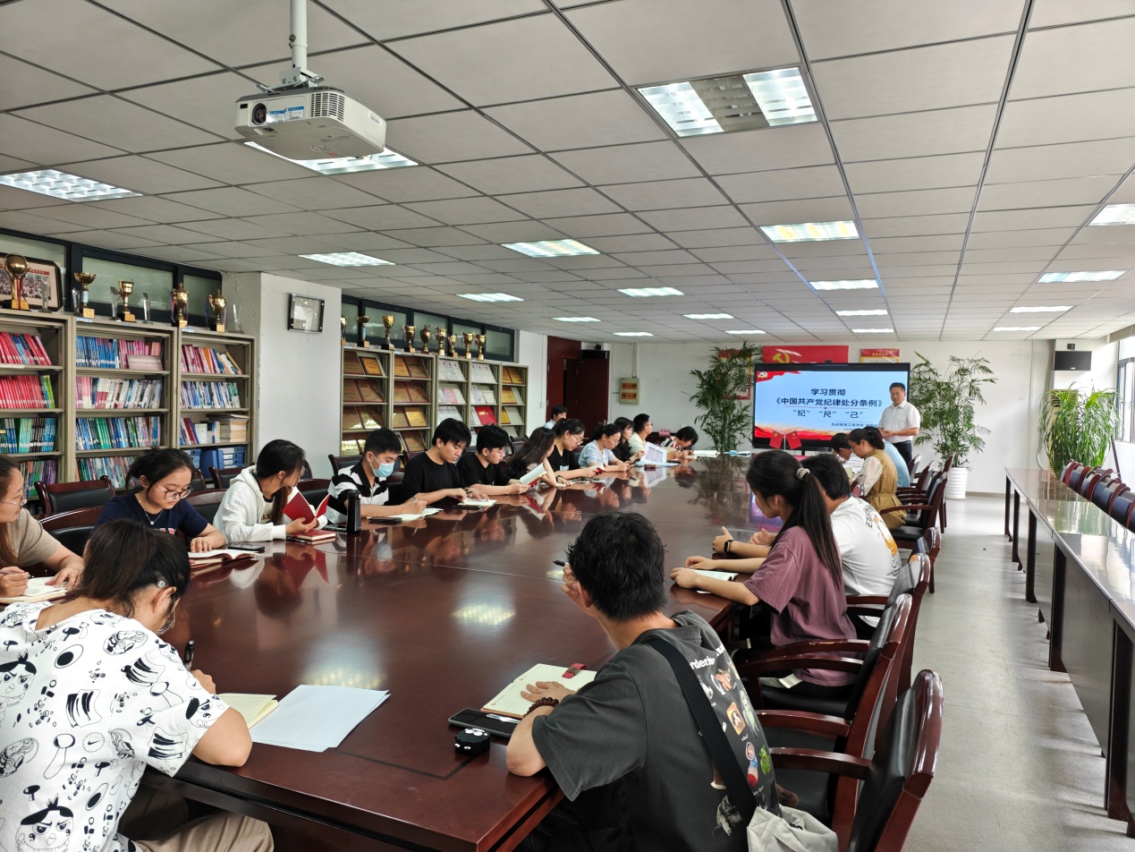 为深入学习贯彻习近平总书记在中国共产党第二十届中央纪律检查委员会第三次全体会议上的重要讲话,推进党纪学习教育,6月11日,先进制造工程学院党委委员、副院长胡国华在35#305为支部成员解读《中国共产党纪律处分条例》,为电子信息工程教工党支部、通信工程学生党支部成员讲党课。 首先,他为大家分析了新修订的《中国共产党纪律处分条例》主要内容,作为规范党组织和党员行为的基础性法规,《条例》对确保全党在政治立场、政治方向、政治原则、政治道路上同以习近平同志为核心的党中央保持高度一致,具有十分重要的作用。 其次,坚持以严的基调全面加强党的纪律建设。《条例》充实完善一些违纪情形的内涵与外延,持续释放正风肃纪反腐力度不减、节奏不变、尺度不松的强烈信号。坚持全链条全周期全覆盖,推动正风肃纪向系统整治、全域治理提升转变。 再次,与时俱进完善纪律规范。《条例》总结了从严管党治党经验,根据党中央部署和形势发展要求作必要修改,着力实现纪律建设的与时俱进。把从严管理监督和鼓励担当作为统一起来。 通过此次学习,使党员同志深刻体会到,纪律是管党治党的“戒尺”,也是党员干部约束自身行为的标准和遵循。促使党员认真学习《条例》,切实把自己摆进去、把工作摆进去、把职责摆进去,深入领会修订《条例》的重点内容和着力方向,强化自我约束,促进担当作为,在新征程上统一思想、统一意志、统一行动,步调一致向前进。