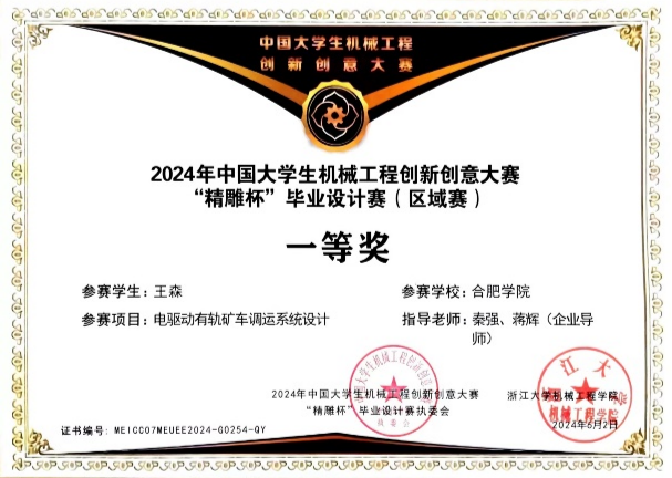为提高机械专业学生的创新能力,先进制造工程学院历来高度重视科创比赛,积极参与题目申报和作品提交,经指导老师和同学们5个多月的努力,我校获批的毕设作品顺利提交,2024年5月22日大赛组委会公布了区域赛评审结果,我校王森同学(导师 秦强)获得中部赛区一等奖,并获得进入全国现场决赛的资格。