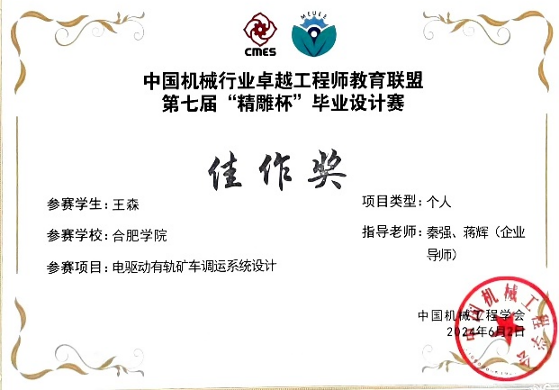先进制造工程学院在中国机械行业卓越工程师教育联盟第七届“精雕杯”毕业设计大赛中获奖