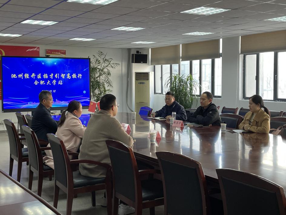 为推动产学研协同创新,寻求政校企合作共赢、共谋发展的良好局面,2024年1月12日,池州经济技术开发区党工委委员、党群工作局(人才办)局长(主任)钱志华率队来我院开展池州经开区招才引智高校行活动,先进制造工程学院党委书记杜娟、副院长秦强、就业联络员张傲参加。