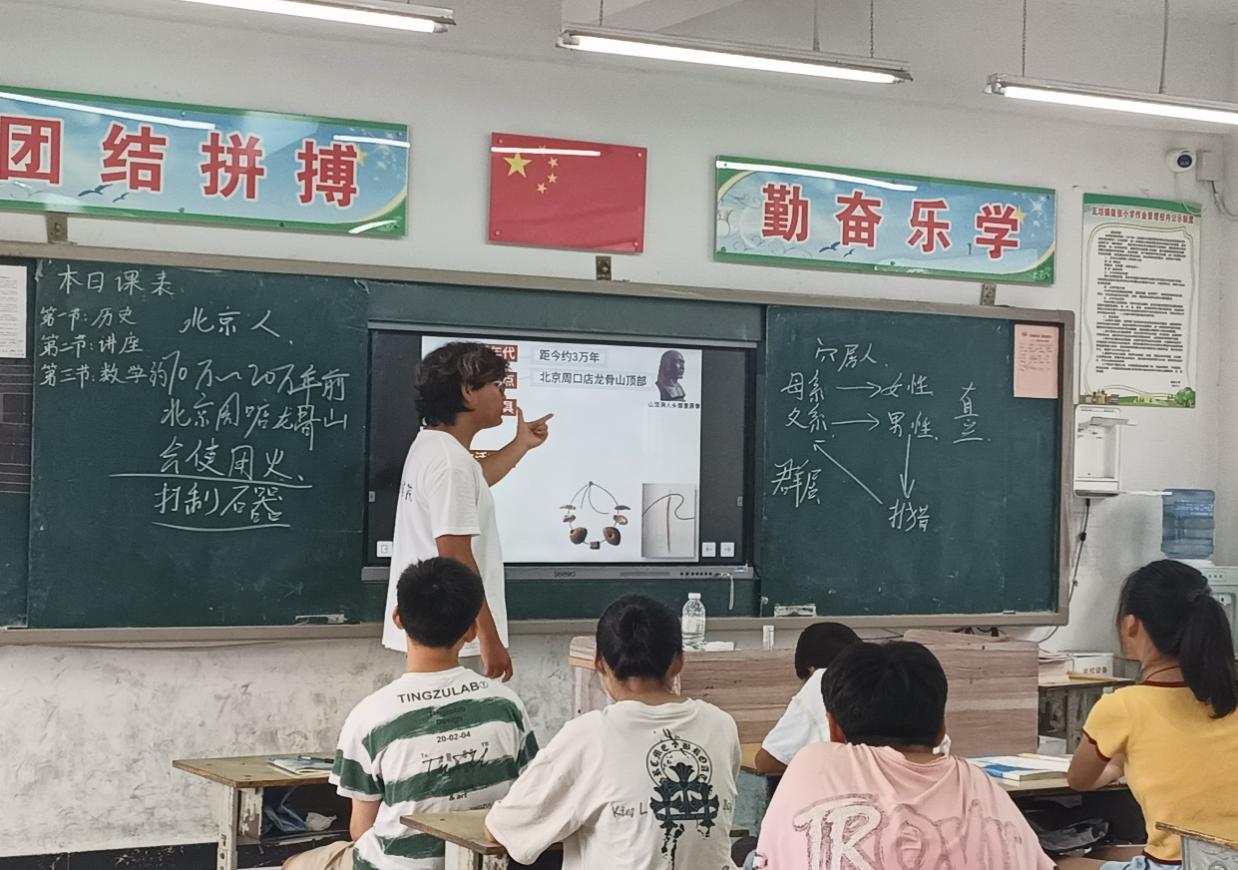 下午,调研团队分为两组。一组仍然留校支教,另一组成员前往泗县博物馆。在工作人员的讲解下,调研团队认识到当地的历史发展,切身感受到泗县浓厚的历史沉淀。博物馆之行不仅提升调研团队的综合素养,更加让调研团队意识到历史的重要性,增强对传统文化的重视。