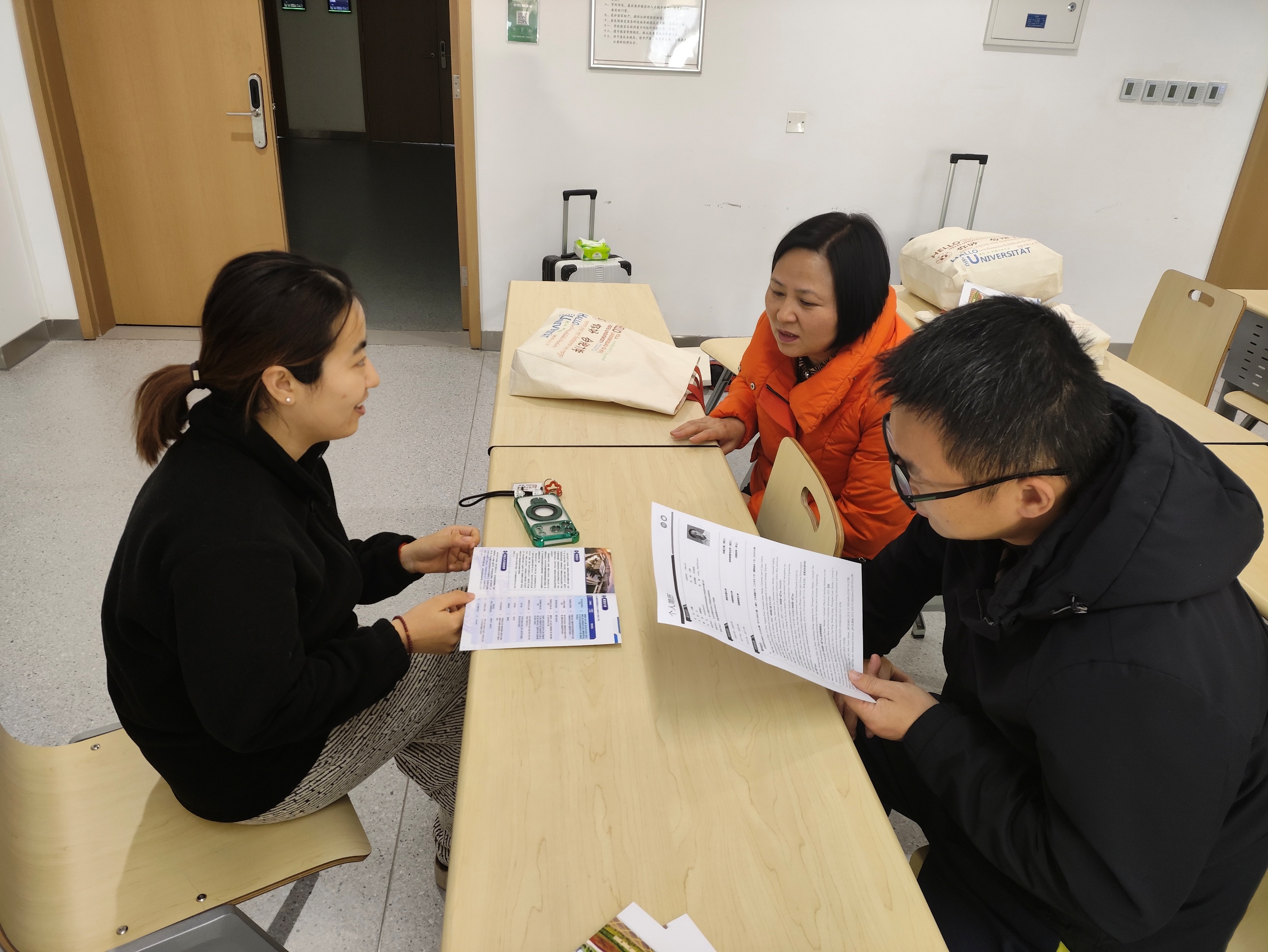 当日下午,在西安交通大学创新港校区力行楼2-6003教室,面向交大机械工程等相关专业的博士生举办了第二场宣讲会,并对现场投递简历的同学进行了初步交流与答疑。为进一步提升引才的精准度和亲和力,谷曼、吴其林与刘威豪三位教师主动深入研究生实验室与工位,与同学们进行面对面、近距离的亲切交谈,关心询问他们的籍贯、研究成果、预计毕业时间及就业意向,并结合个人情况有针对性地介绍合肥大学的发展机遇和合肥城市的活力与潜力,同时发放了学院精心准备的人才引进宣传材料。离校前,同样在公共区域的公告栏张贴了宣传海报,吸引了众多学生驻足观看。