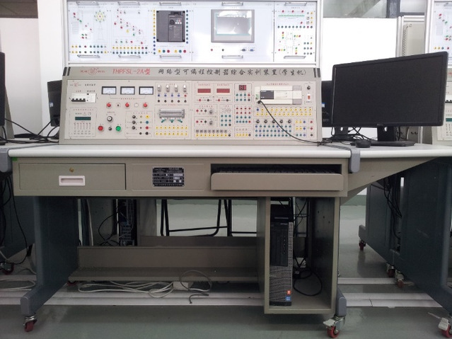 实验室主要实验仪器设备: ●可编程控制器综合实训装置25台套 ●大型显示装置1台 ●计算机25台 实验室承担的主要教学科研任务: ●教师科研、教研 ●毕业设计 ●学科竞赛 实验室主要功能与特色: 配合不同的模块,能开出PLC认知实训、典型电动机控制实操实训、数码显示控制、抢答器控制、装配流水线控制、十字路口交通灯控制、水塔水位控制、天塔之光控制、自动送料装车系统控制、变频器无级调速、触摸屏与变频器通信控制、MCGS组态监控等多个综合设计性实验。 本实验室的最大特色是以占有市场份额最大的西门子S7-200、三菱FX3U系列PLC芯片为核心,结合西门子触摸屏、西门子变频器、三菱变频器、MCGS组态软件,采用西门子、三菱PLC两种编程语言进行教学,让学生掌握主流PLC的使用方法,了解目前工控行业的主要控制方法,实现学校与企业的无缝连接,结合我院“地方性、应用型、国际化”的办学定位,培养合格的应用型人才。