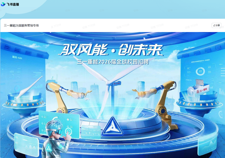 12月29日下午,三一重能举行26届服务管培线上专场招聘会。三一重能主营业务为风电机组的研发、制造与销售,风电场设计、建设、运营管理以及光伏电站运营管理业务。公司具备独立进行风电场设计、建设和运营的能力,是全球风电整体解决方案提供商,致力于成为全球清洁能源装备及服务的领航者。宣讲会上,企业负责人详细介绍了服务管培生一年培训期后,全公司范围内转岗研发、工艺、质量等所有岗位的流程。