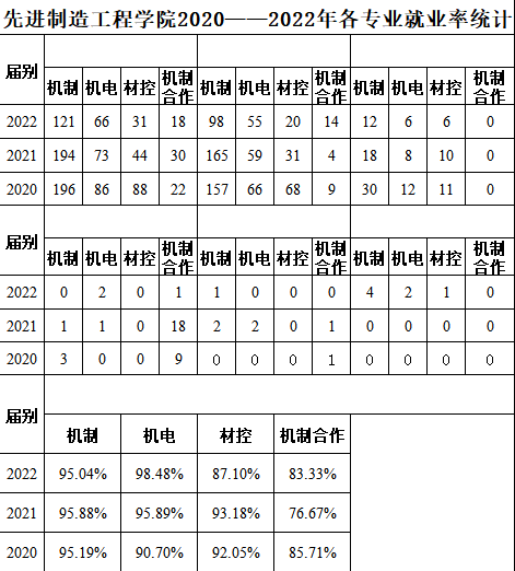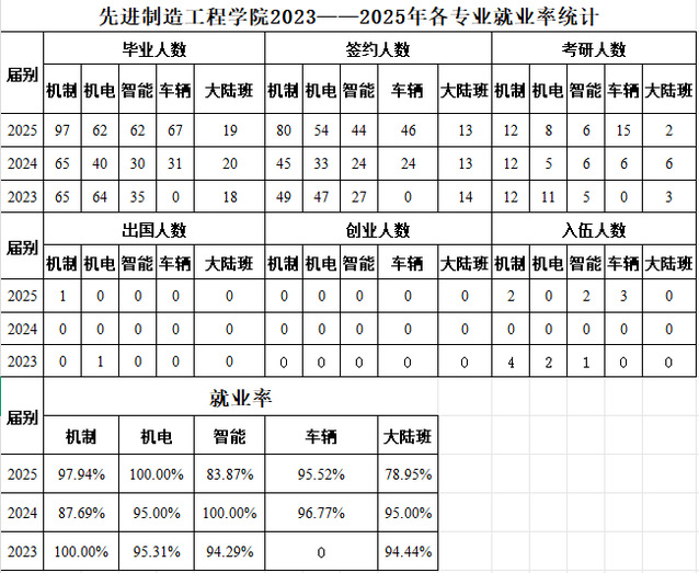 先进制造工程学院2020—2025年各专业就业率统计
