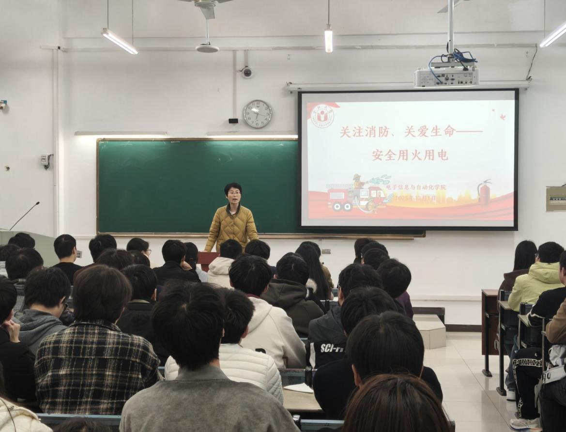 为进一步强化学生消防安全意识,切实提升对用火用电风险的防范能力与应急处置水平,筑牢校园安全防线,12月1日18:30,电子信息与自动化学院于35栋101教室组织开展消防安全专题培训。本次培训特邀学校保卫处副处长周海燕担任主讲人,学院党委书记毛小芳主持培训,各班级班长及生活委员全程参与学习。