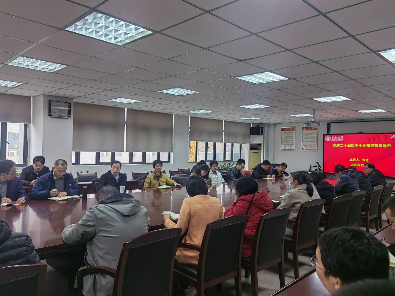 为深入学习贯彻党的二十届四中全会精神,提升党员理论素养与政治能力,2025年12月2日,合肥大学电子信息与自动化学院实验实训中心党支部举办专题党课,深入学习领会党的二十届四中全会精神。本次党课特别邀请安徽省高级人民法院二级巡视员、省委社工部非公党建指导员张仑同志担任主讲。 党课聚焦“党的二十届四中全会精神”主题,系统阐释了全会召开的重大意义、核心要义与战略部署,张仑同志结合自身长期在政法战线工作的实践经验,围绕坚持和加强党的全面领导、推进国家治理体系和治理能力现代化等关键内容进行了深入浅出的解读,阐述了党的二十届四中全会精神在政法领域及高等教育领域的实践要求。 学习过程中,全体党员认真聆听、积极思考。大家一致认为,此次学习有助于进一步统一思想、深化认识、凝聚力量。支部党员纷纷表示,要将学习贯彻党的二十届四中全会精神作为当前重要政治任务,把学习成果转化为推动工作的实际成效,立足实验实训教学与实验室管理服务岗位,坚守为党育人、为国育才初心,不断提升实践育人水平与服务能力,为培养更多高素质电子信息领域人才、服务地方经济和社会发展贡献智慧与力量。