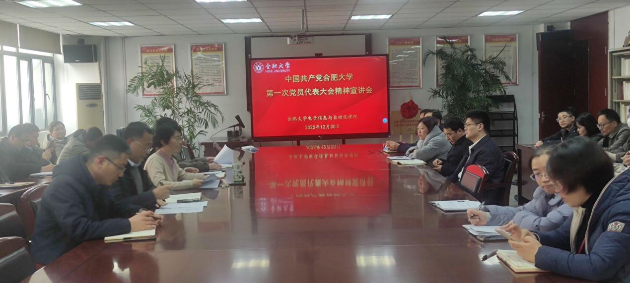12月30日下午,电子信息与自动化学院期末全院教师大会暨中国共产党合肥大学第一次党员代表大会精神宣讲会在38栋305会议室召开,学院全体教师参加会议。