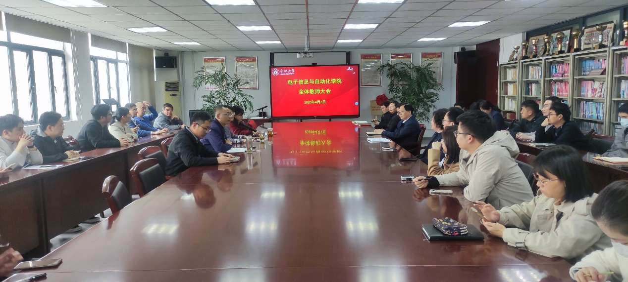 4月7日下午,电子信息与自动化学院在38#305会议室召开全体教师大会,学院全体教师参加会议,会议由院长胡学友主持。此次会议主要梳理总结学院近期各项工作,安排部署下一阶段重点任务,进一步统一老师们的思想,凝聚育人工作合力,推动学院各项工作扎实落地、取得实效,为学院高质量发展打牢基础。
