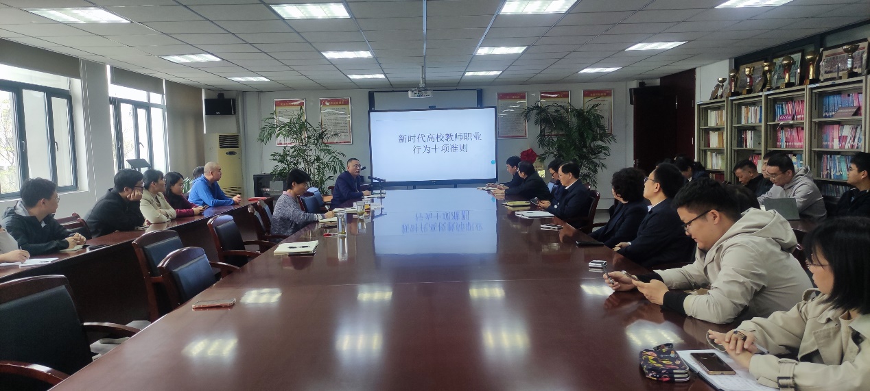 院长胡学友重点强调两项工作。一是持续抓实就业工作,要求各部门、各专业主动担当,积极联动帮扶学生,引导学生树立正确就业观念,多措并举推动就业工作提质增效。二是强化师德师风建设,组织全体教师专题学习《新时代高校教师职业行为十项准则》,引导教师自觉对标对表、严守行为规范,牢记育人职责,严守课堂纪律,规范课堂教学内容,把牢教学质量关口,切实履行好教书育人核心使命。