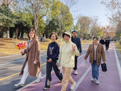 中午时分,暖意融融、氛围热烈。我院教师来到李宁体育公园的出发点,领取活动卡片,在公园门口留影纪念,老师们沿着公园景观步道稳步前行。沿途草木葱郁、景致宜人,老师们或并肩畅谈,交流教学心得与生活趣事;或步履铿锵,享受健步走带来的身心放松,欢声笑语与秋日景致相映成趣,成为公园内一道靓丽的风景线。
