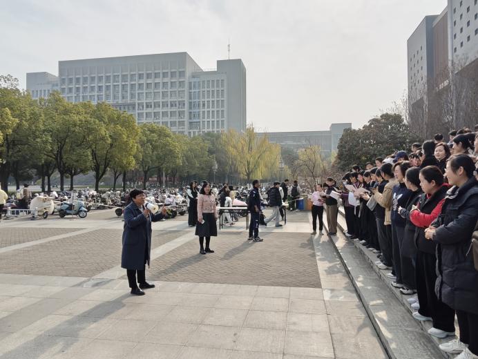 活动于当日12:30 正式启动,起点与终点均设置在图书馆东侧广场。12:20 起,参与教职工陆续抵达集合点签到,大家身着舒适的运动装与运动鞋,精神饱满地等候活动开始。工会主席李秀娟做动员讲话,她希望大家今天既能享受寻找目标的乐趣,也能注意脚下的安全,把每一步都走得轻松愉快。