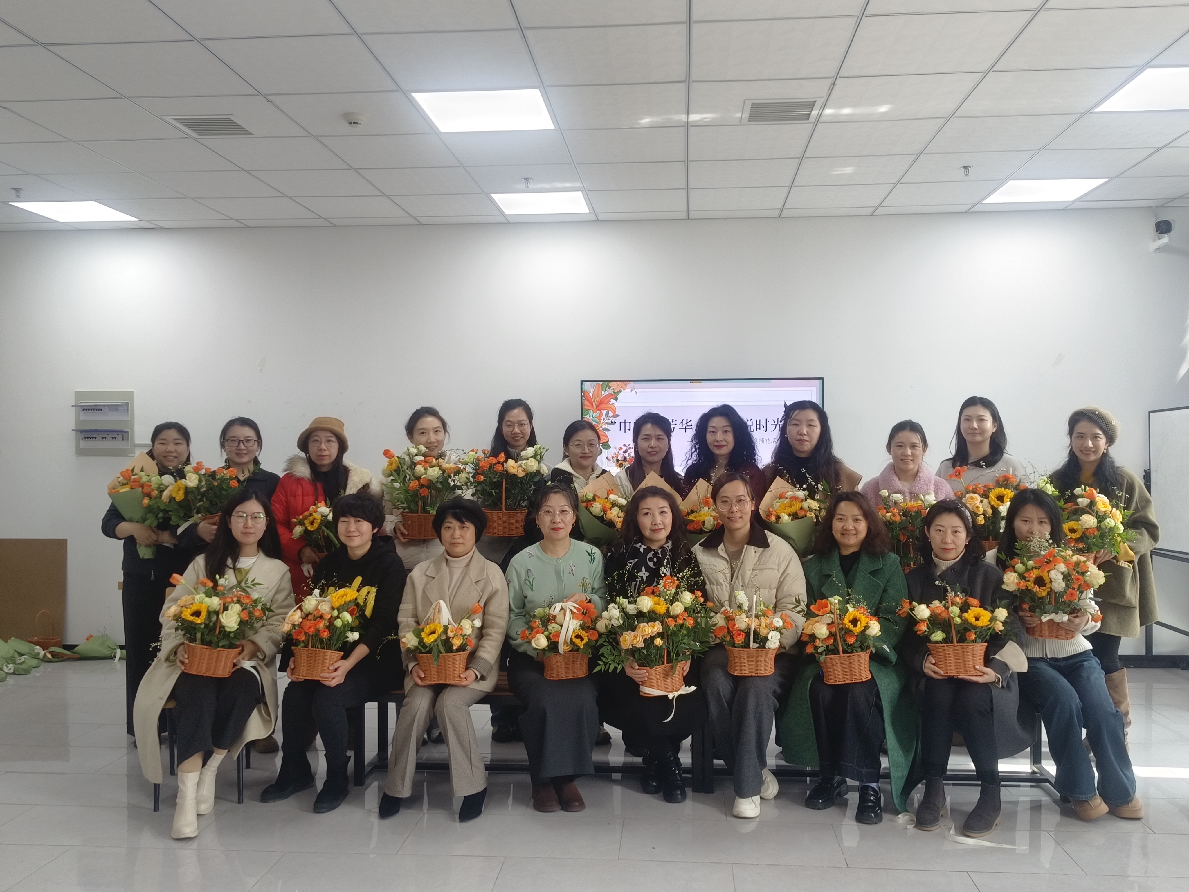 为热烈庆祝第116个“三八”国际劳动妇女节,丰富学院女教职工的精神文化生活,舒缓工作压力,增添生活情趣,3月6日中午,合肥大学设计学院分工会在55-202教室精心举办“巾帼绽芳华,插花悦时光”创意插花活动,学院共计36名女教职工欢聚一堂,以花为媒,共赴一场浪漫的花艺之约。