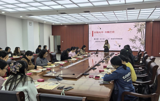 为庆祝第116个“三八”国际劳动妇女节,传承中华优秀传统文化,丰富女教职工精神文化生活,合肥大学机关第二分工会举办“非遗宋锦展古韵 巧手匠心绽芳华”宋锦小马手工制作主题活动,机关第二分工会40余名女教职工欢聚一堂,共赴一场指尖上的非遗之约。