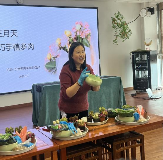 此次多肉DIY活动,不仅丰富了女职工的精神文化生活,加强了彼此之间的交流与联结,也进一步营造了尊重女性、关爱女性的和谐氛围。机关一分会将以本次活动为新的起点,继续组织开展形式多样、内容丰富的文化活动,为女同胞们搭建更多舒缓压力、互动交流的平台,让大家在温馨向上的集体中,持续绽放自信风采,以更饱满的热情与活力,投身于工作与生活之中。撰稿:余飞