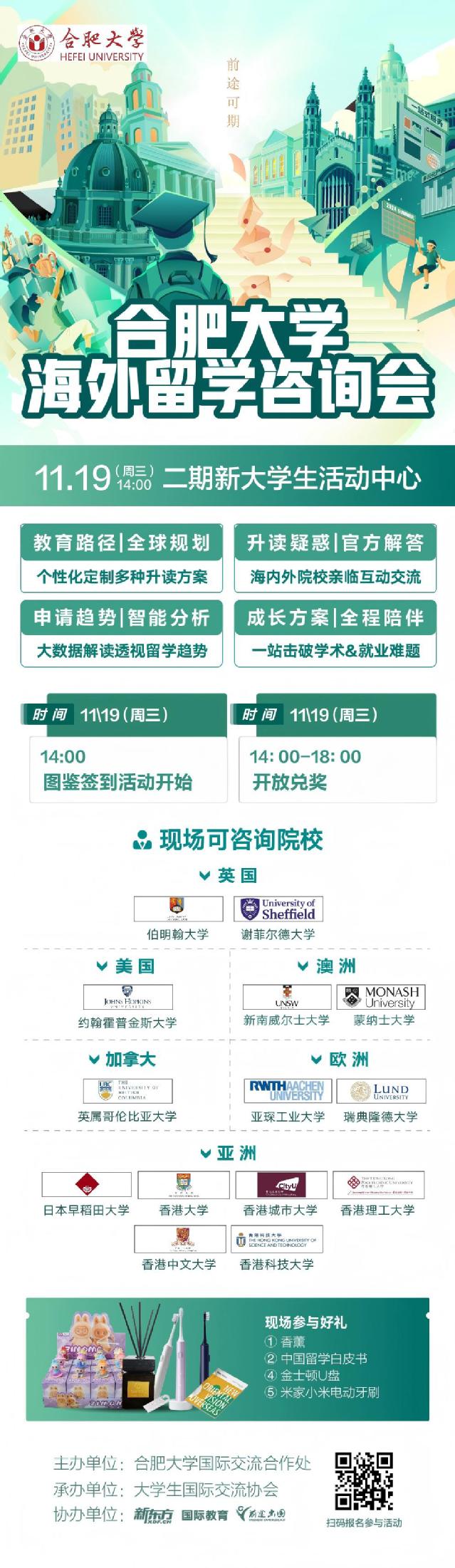 为进一步提升学校国际化办学水平,助力学生拓展多元发展途径,学校将于本周三举办海外留学咨询会。本次海外留学咨询会特邀多所海外知名院校,面向学生提供面对面交流与咨询,内容涵盖海外高校招生录取、专业选择以及海外学习生活等方面。活动具体信息如下: