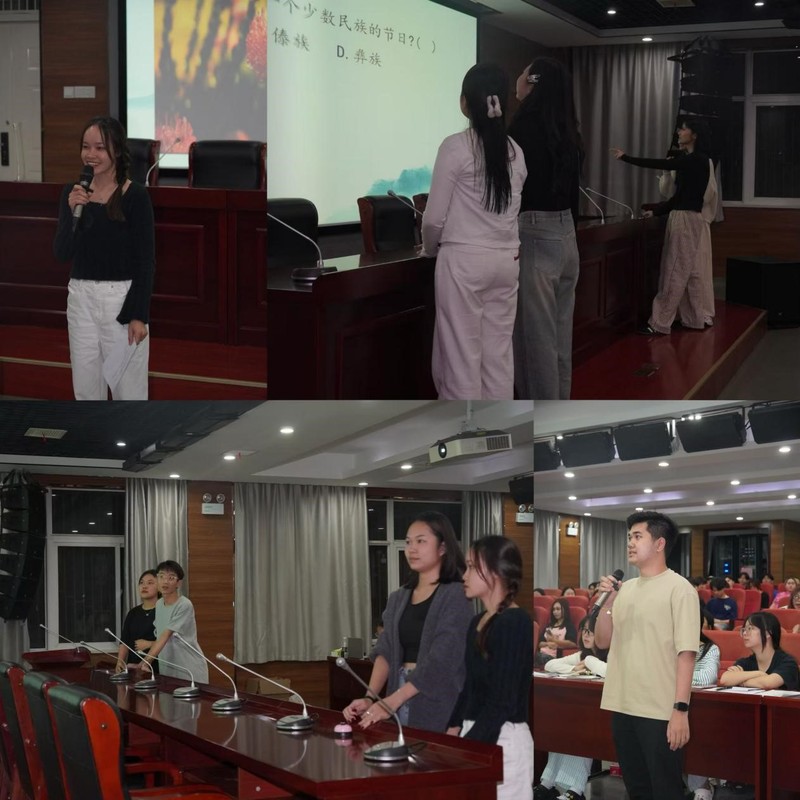 为激发留学生对中华语言文化的兴趣,提升其普通话实际运用能力,搭建一个语言互通、文化互鉴的交流平台,2025年9月18日晚18:30,合肥大学国际教育学院围绕“加大国家通用语言文字推广力度,促进铸牢中华民族共同体意识”主题,隆重举办“推普周”系列活动。活动特邀文化与旅游学院王昌宜老师、汤尧老师、周佳俊老师以及国际教育学院胡双露老师担任评审嘉宾。