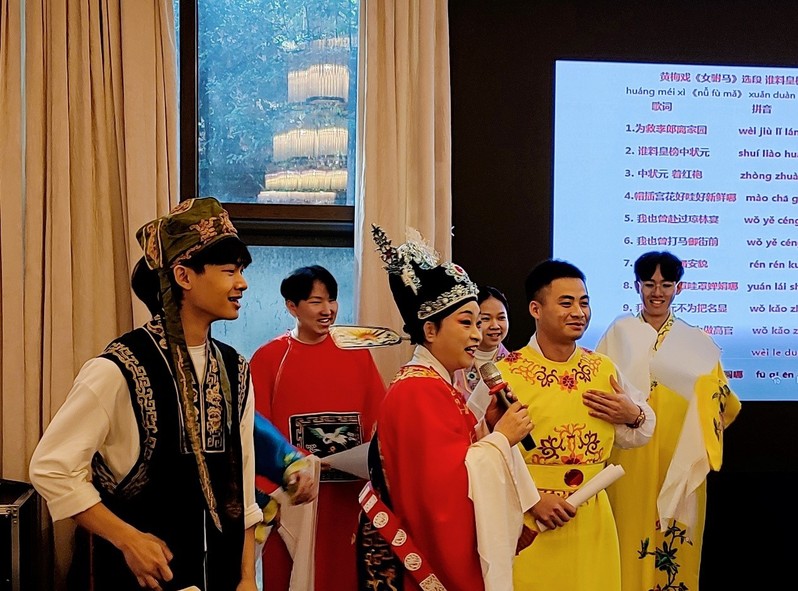 最后,大家前往徽菜博物馆,进一步了解徽菜的渊源与特色,并在专业老师的指导下学唱黄梅戏,于婉转唱腔中触摸安徽戏曲的独特韵味。