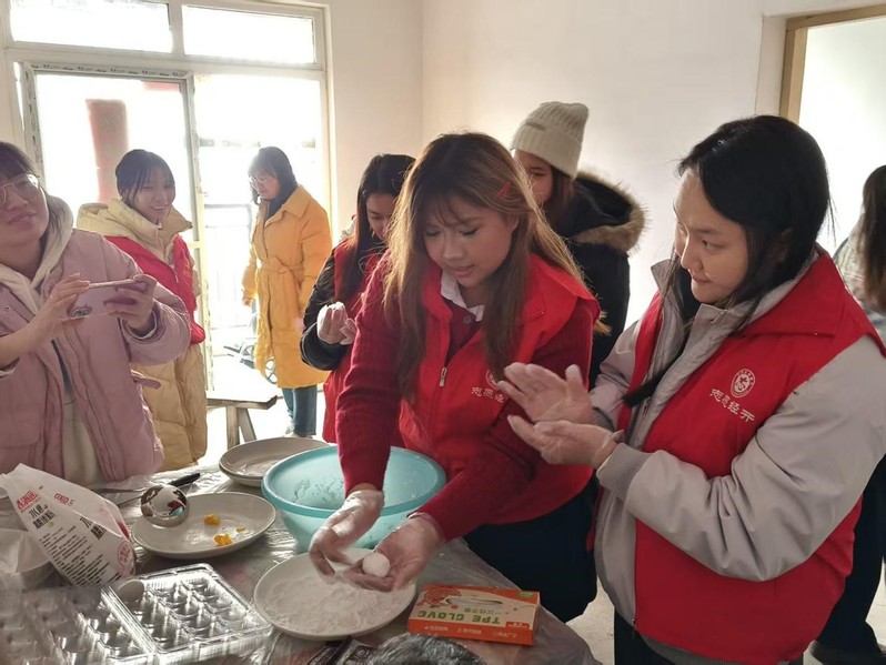 2025年12月17日下午,合肥市临湖社区一户居民家中暖意融融。来自合肥大学的5名留学生与社区一位独居老人齐聚于此,共同参与“共捧一团圆,暖意‘临’距离”社区温情陪伴活动。这也是我校社会志愿实践课程的规划内容,其余19名选课同学通过线上图片直播同步参与。