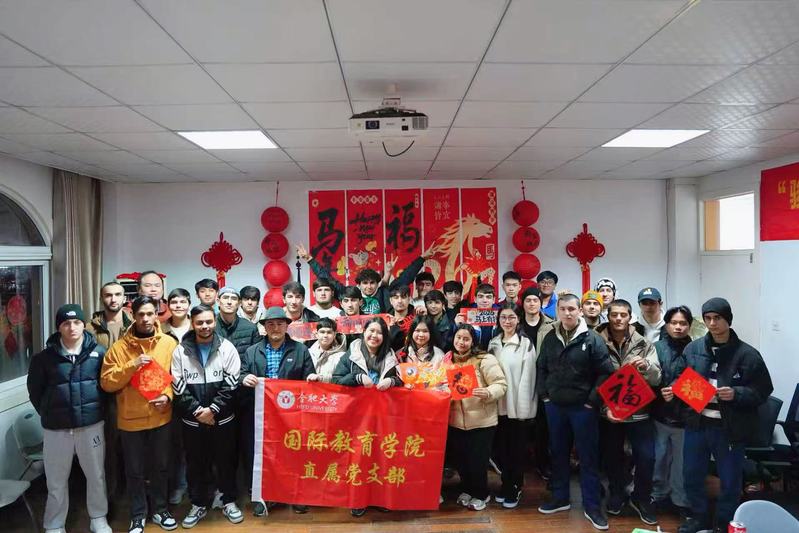 金马迎春,福满庐州。为丰富来华留学生校园文化生活,增进对中国春节民俗与传统文化的理解,合肥大学国际教育学院直属党支部精心组织各国留学生集中收看马年春晚直播,共度温馨喜庆的中国除夕。
