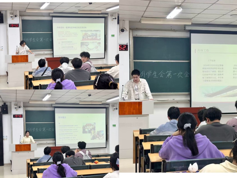 为凝聚中外学生工作合力,明确工作方向,夯实工作基础,4月15日晚7:30至8:30,国际教育学院中外学生会第一次全体会议在2栋教学楼107教室顺利举行。新闻部、实践部、学纪部相关成员悉数参会,荣泽辰老师出席会议并作总结发言。