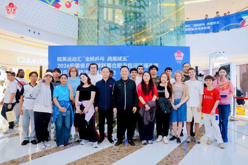 2026年是中美“乒乓外交”55周年,为赓续“小球转动大球”的友好交流精神,4月26日下午,2026“徽乒赛”外籍选手专场活动在合肥包河万达广场顺利落幕。国际教育学院精心组织17名来华留学生参赛,与全球38个国家的百余名外籍选手及本土乒乓爱好者同台竞技、以球会友,以体育为纽带深化中外互通、凝聚跨国情谊。