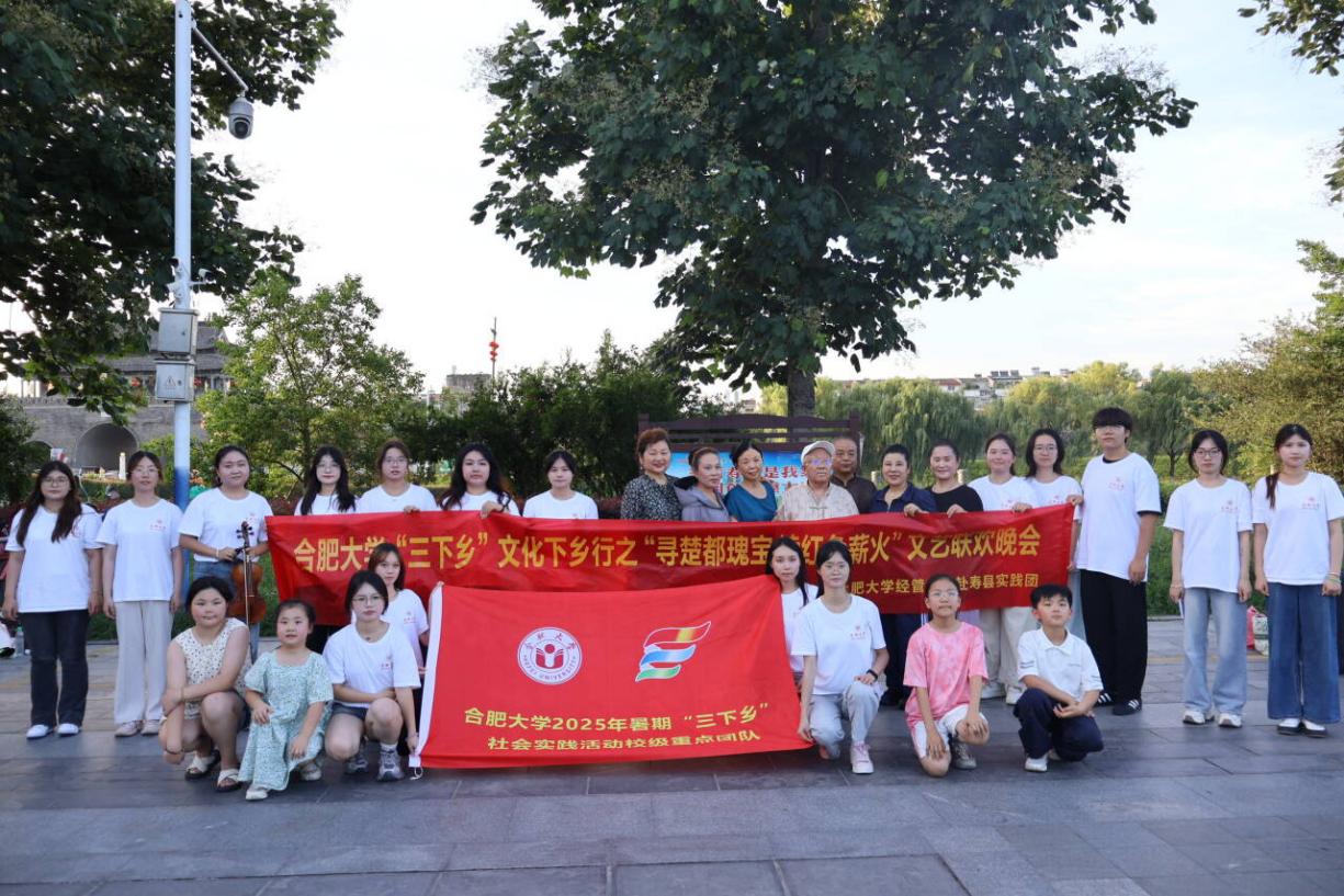 为深化校地文化共建,赋能乡村振兴,合肥大学经济与管理学院“合启淮章”暑期三下乡实践团队联合寿县非遗传承人、当地居民,于7月1日下午在寿县春申广场成功举办 “寻楚都瑰宝,续红色薪火”文艺联欢晚会。