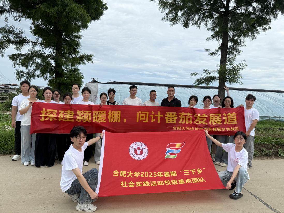6月29日,合肥大学经济与管理学院“颍领风番”团队在陈思超老师的带领下,前往安徽省颍上县建颍乡二龙村番茄种植暖棚基地,探索乡村振兴的产业发展。