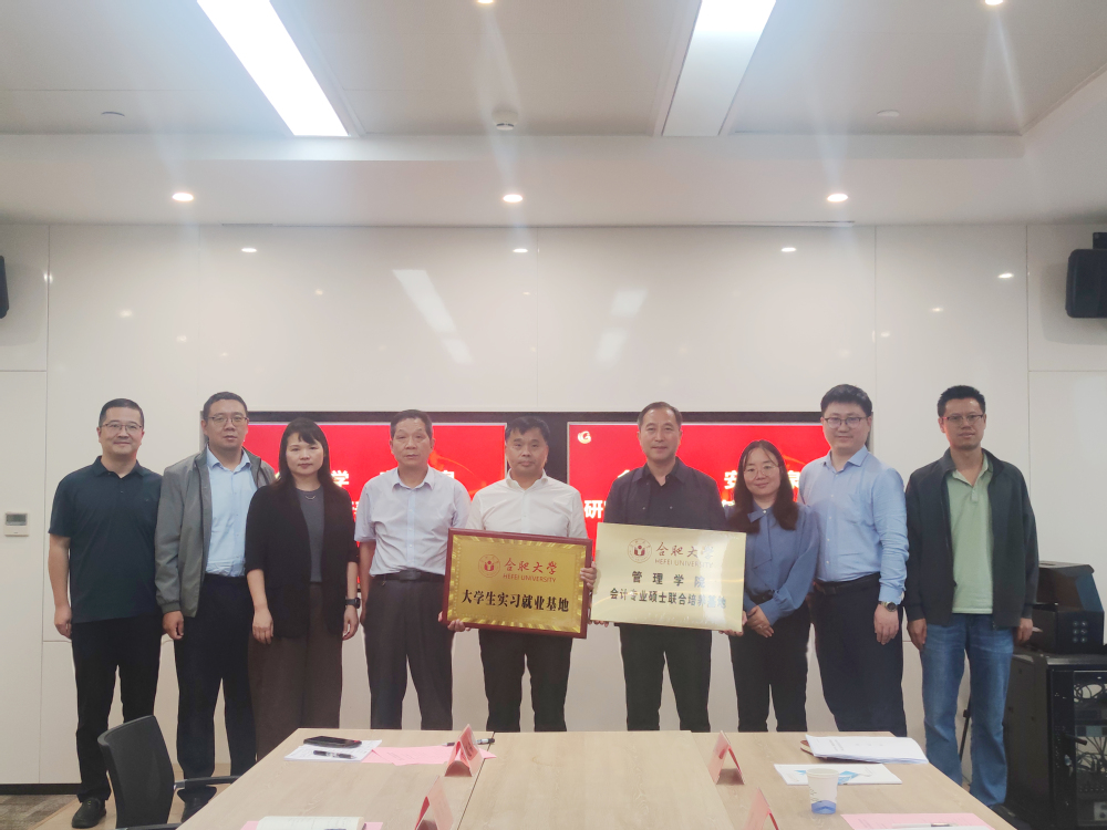 最后,宋玉军院长与庄恒书董事长共同签署《合肥大学管理学院和安徽金泉会计师事务所共建研究生联合培养基地》协议书,并举行揭牌仪式,标志着双方合作正式落地。此次会计专硕研究生实习基地挂牌仪式的顺利举行,为校企协同育人搭建了坚实平台,有力推动了会计专硕教育与行业需求的精准对接。此外,双方还就本科会计专业、财务管理专业的实习实践、课程共建及就业等合作方向进行了深入交流,并达成良好共识。