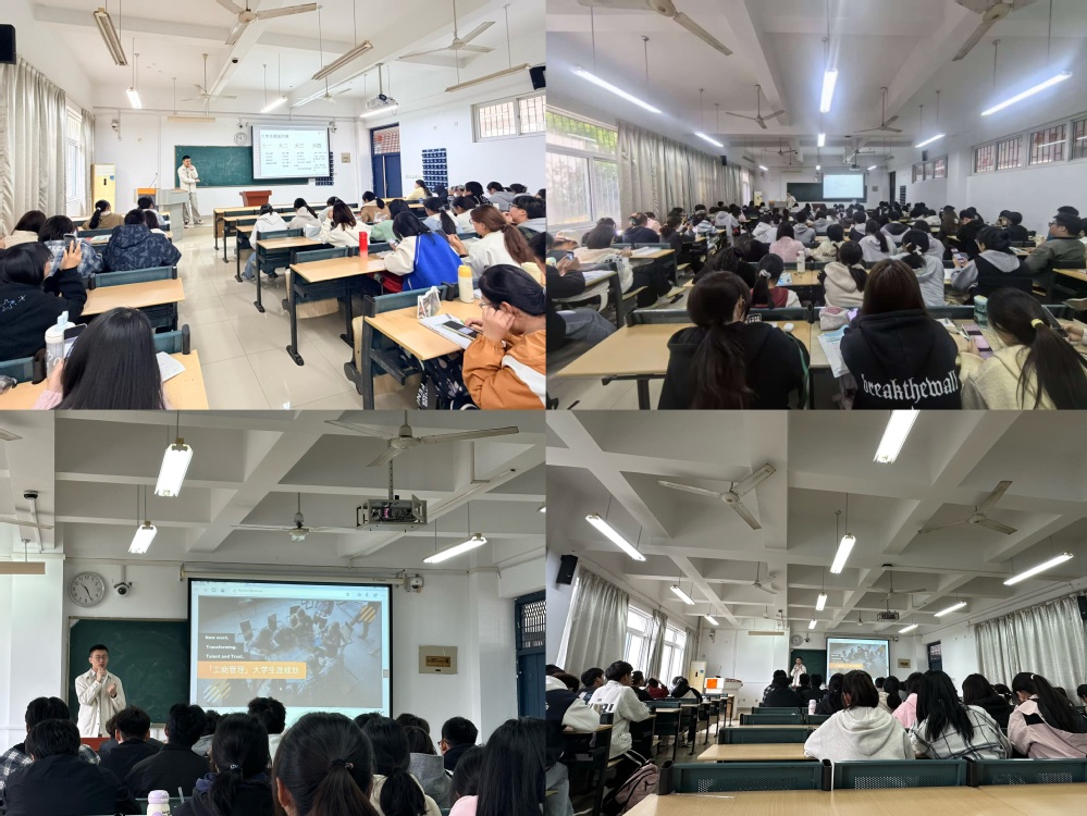 为帮助2025级新生深入了解专业特点、科学规划未来发展路径,管理学院于10月邀请高顿教育高管走进课堂,面向全院新生连续开展5场职业生涯规划专题指导活动。活动内容覆盖会计学、工商管理、物流管理、中德物流、供应链管理等多个专业的发展趋势与就业前景,助力同学们增强自我认知、明确职业方向,为人生发展做好前瞻性规划。 课堂上,高顿教育高管从专业与行业视角出发,系统解析了当前相关领域的发展动态,并针对学生在职业规划中常见的困惑,提出顺应时代需求的成长建议。他们鼓励同学们正确认识个人发展与社会需求的关系,在积极适应社会发展的过程中实现自我价值。参与学生纷纷表示,将珍惜在校时光,扎实学习专业知识,全面提升综合素养,科学谋划职业发展路径,为未来人生目标的实现奠定坚实基础。