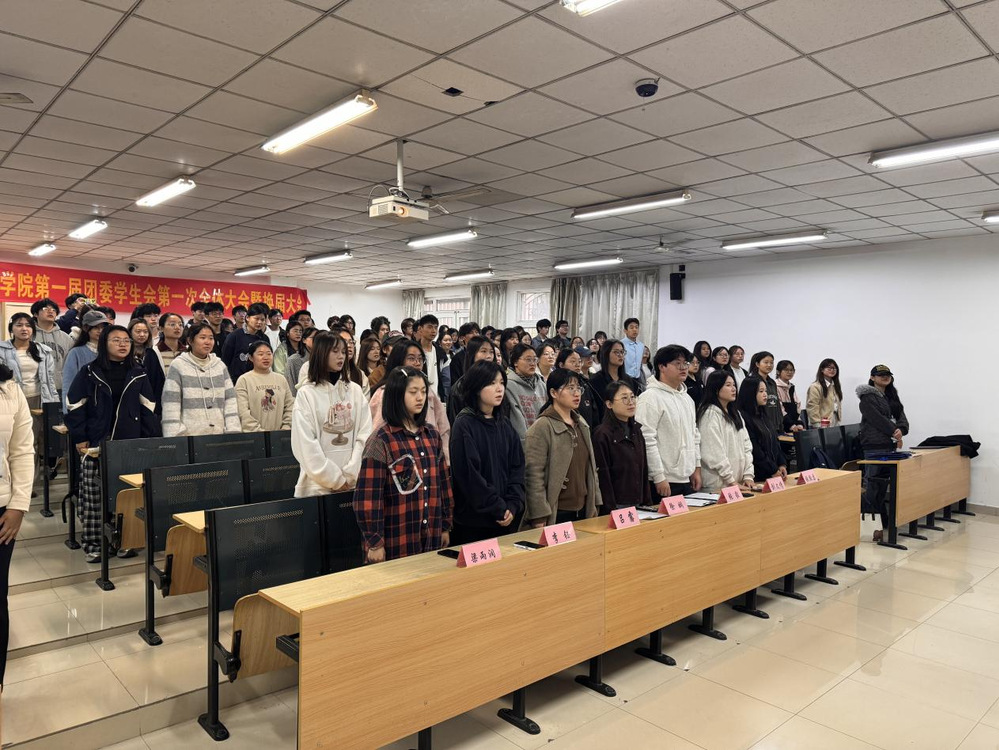 为进一步加强学生会组织建设,传承服务奉献精神,凝聚青春力量,2025年11月6号中午,管理学院第一届团委学生会第一次全体大会暨第一届团委学生会换届大会顺利召开。管理学院党委副书记徐娴、团委负责人吕露出席,学生会全体成员参加了本次会议。会议由管理学院学生会委员胡亚男主持。 大会伊始,全体参会人员奏唱中国共产主义青年团团歌。激昂的旋律凝聚青春力量,嘹亮的歌声传递责任担当,为本次换届大会拉开序幕。