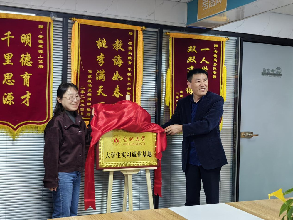 为全力推进2026届毕业生就业工作,进一步拓宽毕业生就业渠道,挖掘优质岗位资源,11月12日下午,学院党委副书记徐娴带领学院就业联络员余宏强,赴考德尚教育管理咨询有限公司总部参观交流,并举行“合肥大学大学生实习就业基地”揭牌仪式。考德尚教育董事长、退役军人朱建华及企业高管团队热情接待,双方共商产教融合新路径,现场签约揭牌。